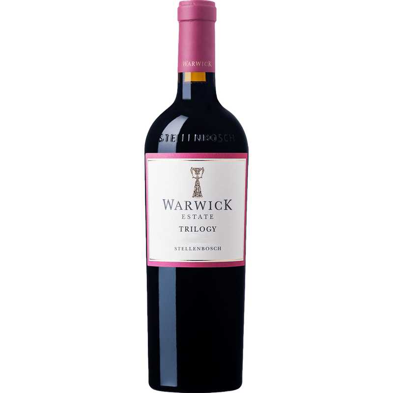 Lagerung bis zu 15 Jahre. Es wird empfohlen, ihn eine halbe Stunde lang zu dekantieren. Das in der angesehenen Weinregion Stellenbosch am Westkap Südafrikas gelegene Warwick Estate befindet sich im Besitz der Familie Ratcliffe, die das Anwesen 1964 erwarb, um es in den frühen 1980er Jahren auf Weinbau umzustellen. Das Weingut umfasst 40 Hektar Weinberge und die Familie kauft die restlichen Trauben von dem Weingut Uitkyk Estate. Warwick Estate ist berühmt für seine kräftigen, vollmundigen Rotweine, die hauptsächlich auf Cabernet Sauvignon basieren, produziert aber auch andere internationale Sorten wie Sauvignon Blanc, Pinotage, Merlot, Cabernet Franc, Syrah und Chardonnay. Die Warwick Estate Trilogy ist ein Blend aus Cabernet Franc, Cabernet Sauvignon und Merlot. Jede Sorte wird separat geerntet. Nach der Gärung reifen die Weine 24 Monate lang in französischen Eichenfässern und werden vor der Abfüllung gemischt. Die Farbe ist intensiv rot. In der Nase zeigt der Wein ein komplexes Bouquet mit fruchtigen Noten von Pflaumen und Himbeeren, schwarzen Johannisbeeren und Cassis, durchsetzt mit Gewürzen, Tabak und getrockneten Kräutern. Am Gaumen ist der Wein rund und harmonisch mit einem kräftigen und samtigen Tanningerüst. Der Abgang ist lang und elegant und erinnert an einen Hauch von Holz. Probieren Sie ihn zu gebratenem Fleisch (vor allem Lamm), Wild oder Rindfleisch und reifem Käse.