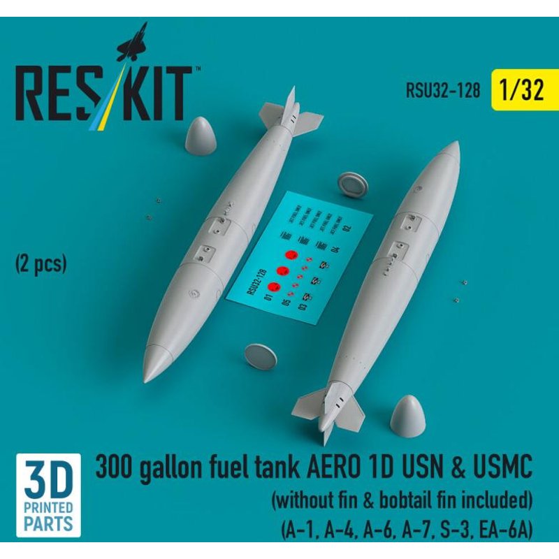 300 gallon fuel tank AERO 1D USN & USMC (2 pcs) (without fin & bobtail fin included) (A-1, A-4, A-6, A-7, S-3, EA-6A) (3D Printed)