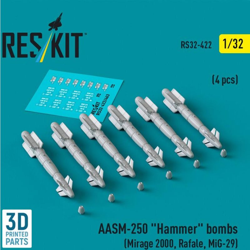 AASM-250 Hammer bombs (6 pcs) (Mirage 2000, Rafale, MiG-29) (3D Printed)