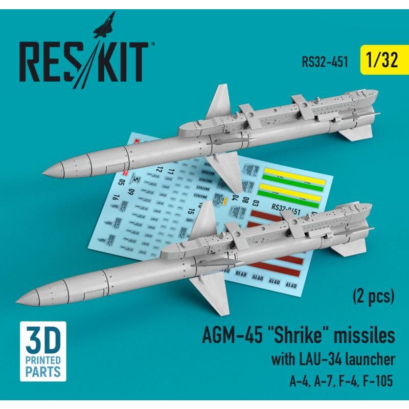 AGM-45 Shrike missiles with LAU-34 launcher (2 pcs) (A-4, A-7, F-4, F-105) (3D Printed)