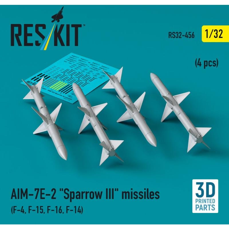 AIM-7E-2 Sparrow III missiles (4 pcs) (F-4, F-15, F-16, F-14) (3D Printed)
