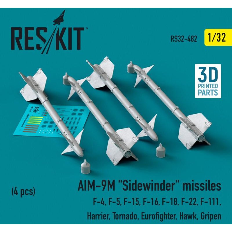 AIM-9M Sidewinder missiles (4 pcs) (F-4, F-5, F-15, F-16, F-18, F-22, F-111, Harrier, Tornado, Eurofighter, Hawk, Gripen) (3D Printed)