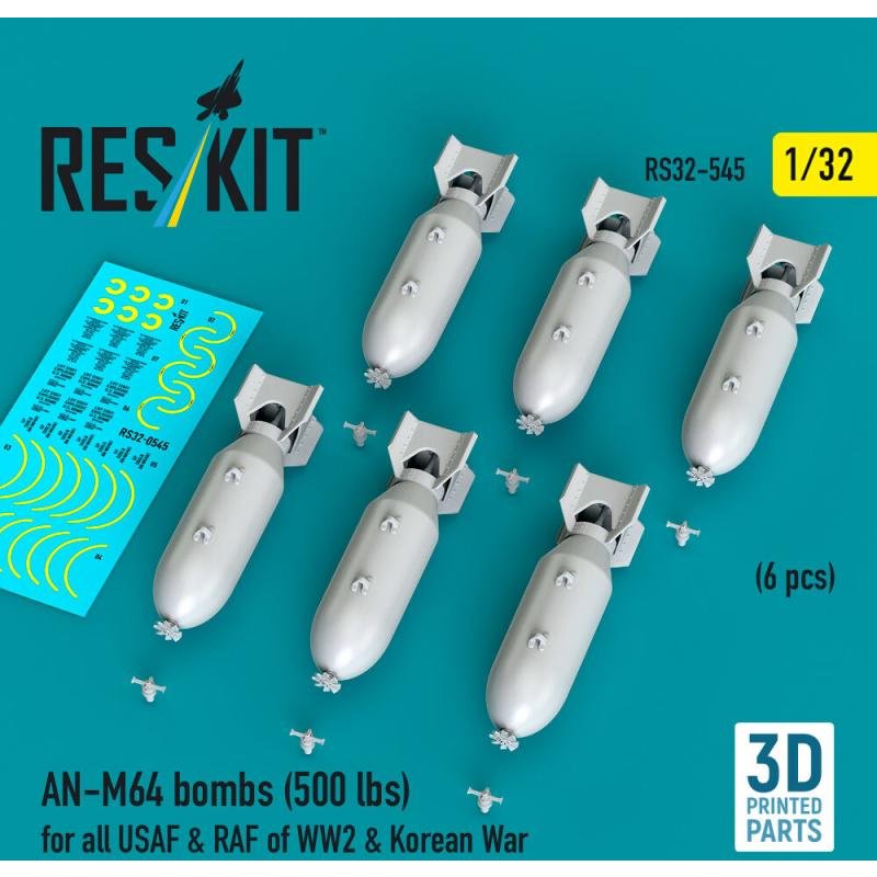 AN-M64 bombs (500 lbs) for all USAF & RAF of WW2 & Korean War (6 pcs) (3D Printed)