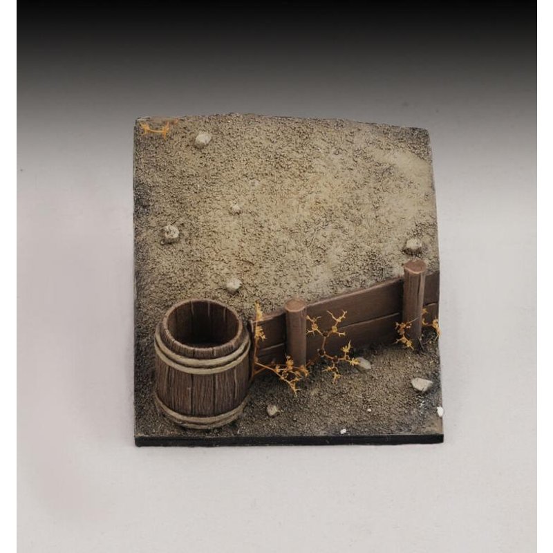 Base with bucket and wooden wall