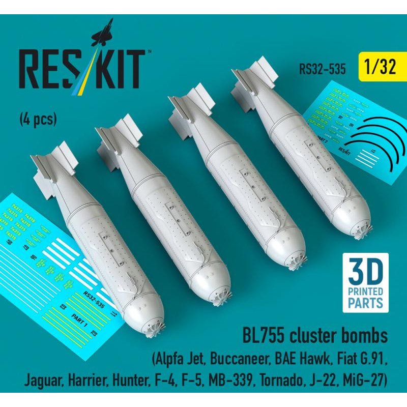 BL755 cluster bombs (4 pcs) (Alpfa Jet, Buccaneer, BAE Hawk, Fiat G.91, Jaguar, Harrier, Hunter, F-4, F-5, MB-339, Tornado, J-22, MiG-27) (3D Printed)