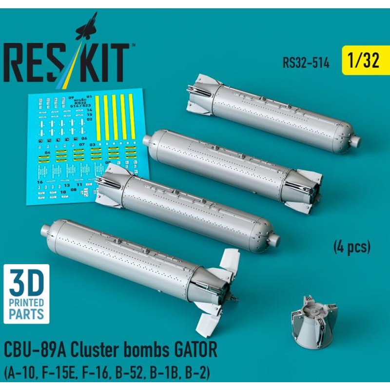 CBU-89A cluster bombs GATOR (4 pcs) (A-10, F-15E, F-16, B-52, B-1B, B-2) (3D Printed)