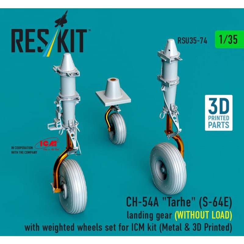 CH-54A Tarhe(S-64E) landing gear (WITHOUT LOAD) with weighted wheels set [ICM] (Metal & 3D Printed)