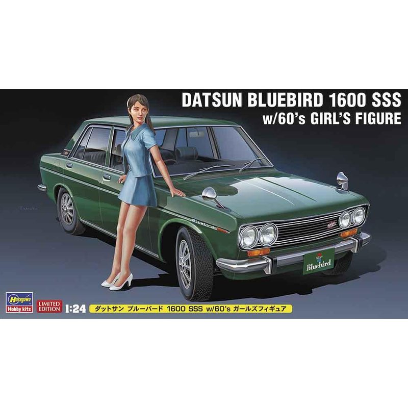Datsun Bluebird 1600 SSS mit 60er Jahre Frauenfigur