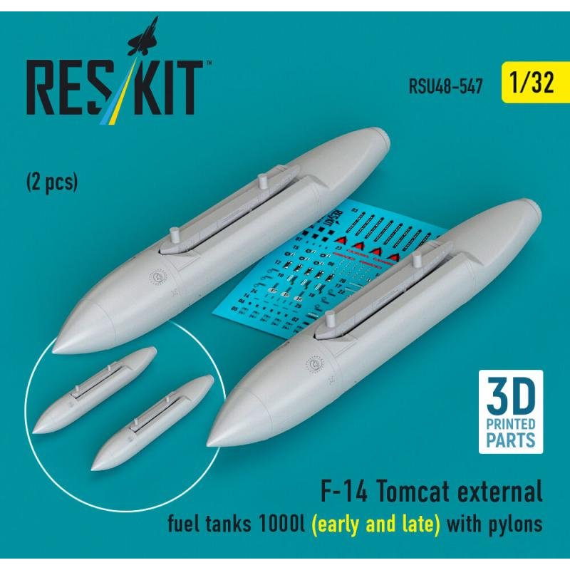 F-14 Tomcat external fuel tanks 1000l (early and late) with pylons (2pcs) (3D Printed)