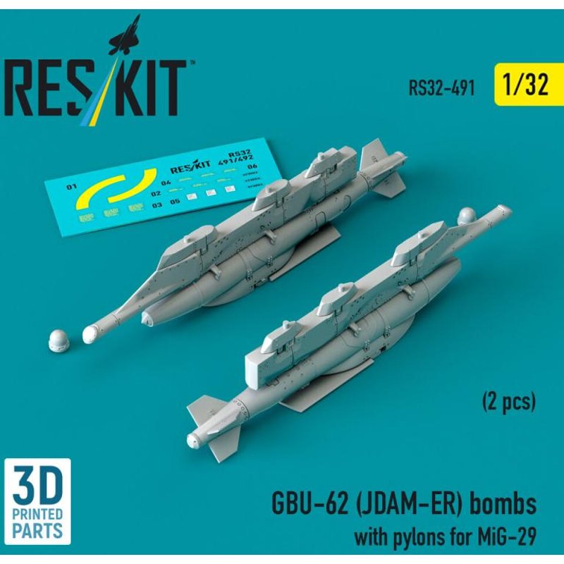 GBU-62 (JDAM-ER) bombs with pylons for MiG-29 (2 pcs) (3D Printed)
