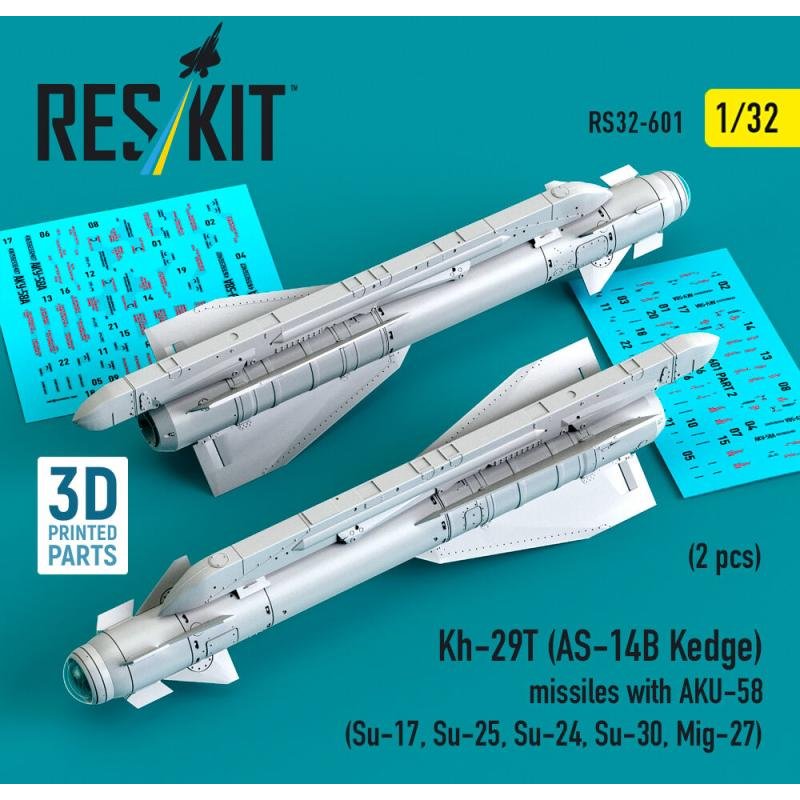 Kh-29T (AS-14B Kedge) missiles with AKU-58 (2 pcs) (Su-17, Su-25, Su-24, Su-30, Mig-27) (3D Printed)