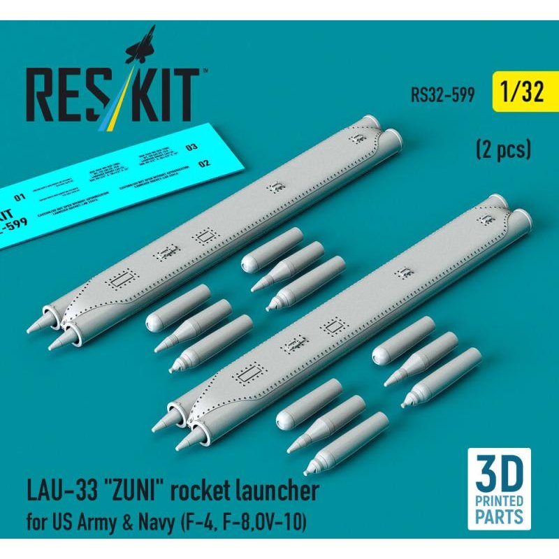 LAU-33 ZUNI rocket launcher for US Army & Navy (2 pcs) (F-4, F-8, OV-10) (3D Printed)