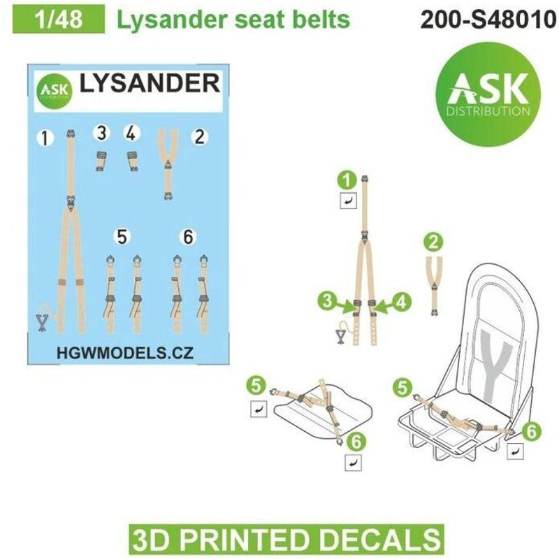 Lysander seat belts - 3D printed decals