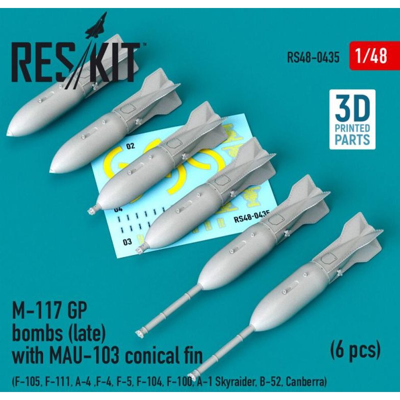 M-117 GP bombs (late) with MAU-103 conical fin (6 pcs) (F-105, F-111, A-4 ,F-4, F-5, F-104, F-100, A-1 Skyraider, B-52, Canberra) (3D Printed)