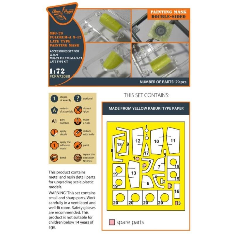 MiG-29 FULCRUM-A 9-12 late type - Double-sided painting mask [GWH]