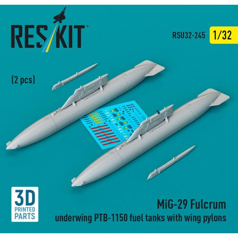 MiG-29 Fulcrum underwing PTB-1150 fuel tanks with wing pylons (2 pcs) (3D Printed)