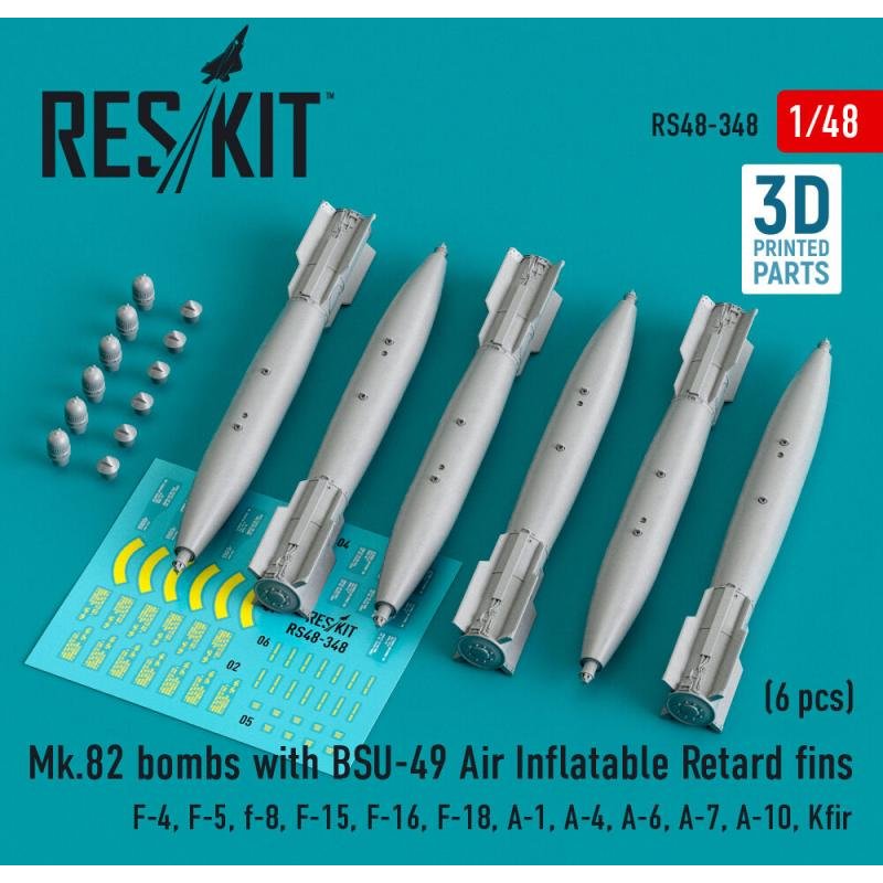 Mk.82 bombs with BSU-49 air inflatable retard fins (6 pcs) (F-4, F-5, F-8, F-15, F-16, F-18, A-1, A-4, A-6, A-7, A-10, Kfir) (3D Printed)