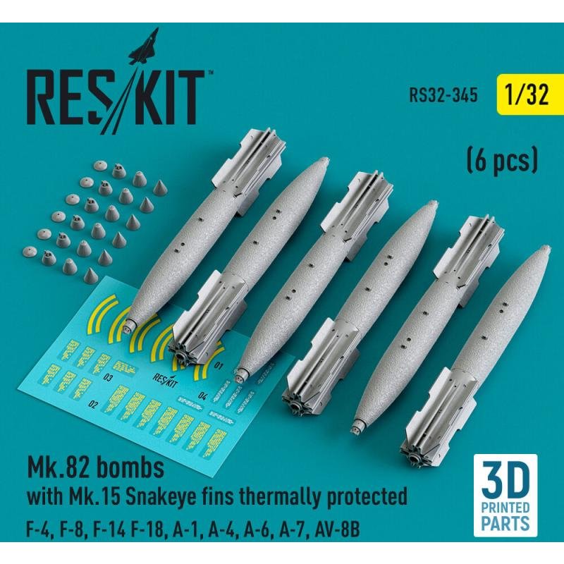 Mk.82 bombs with Mk.15 Snakeye fins thermally protected (6 pcs) (F-4, F-8, F-14 F-18, A-1, A-4, A-6, A-7, AV-8B) (3D Printed)
