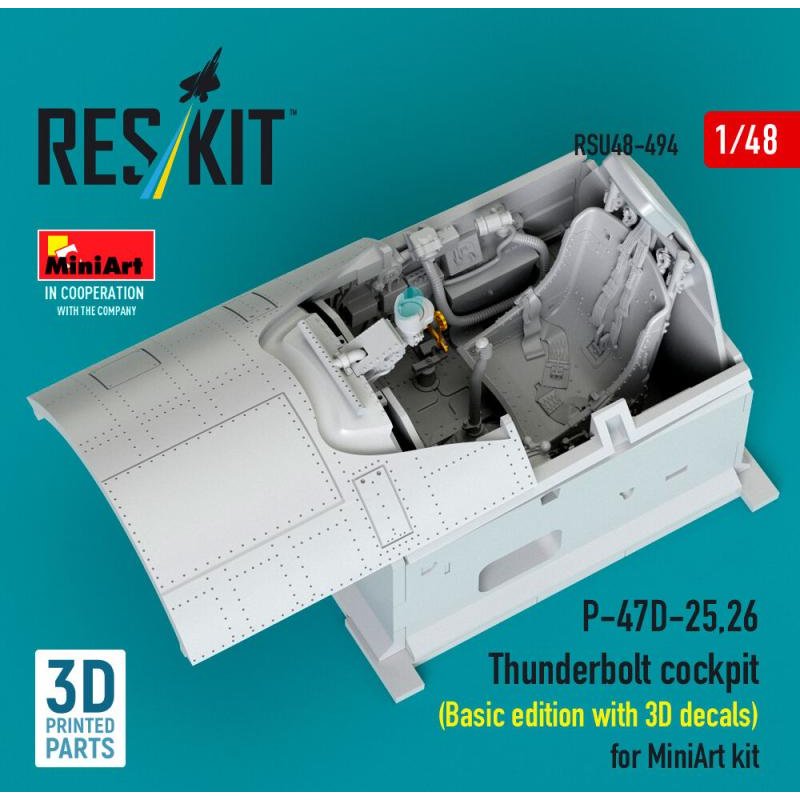 P-47D-25,26 Thunderbolt cockpit (Basic edition with 3D decals) [Miniart] (3D Printed)