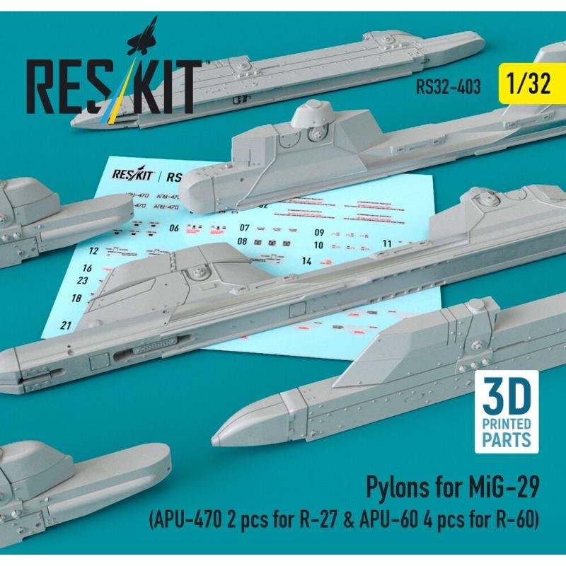 Pylons for MiG-29 (APU-470 2 pcs for R-27 & APU-60 4 pcs for R-60) (3D Printed)