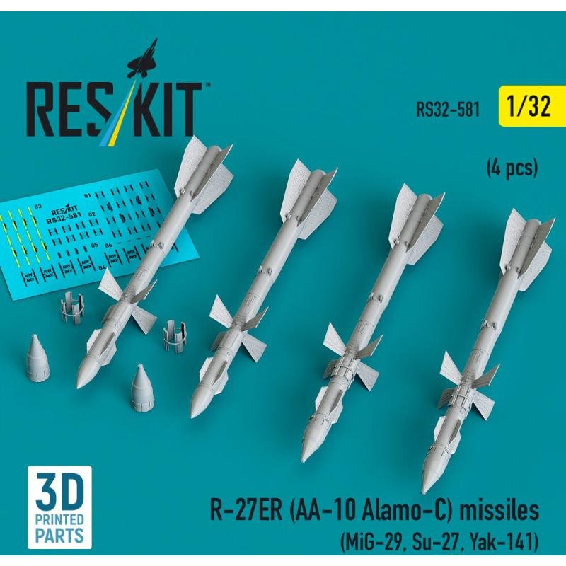 R-27ER (AA-10 Alamo-C) missiles (4 pcs) (MiG-29, Su-27, Yak-141) (3D Printed)