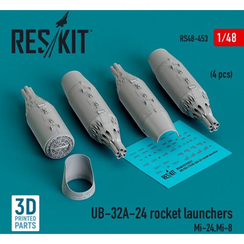 UB-32A-24 rocket launchers (4 pcs) (Mi-24,Mi-8) (3D Printed)