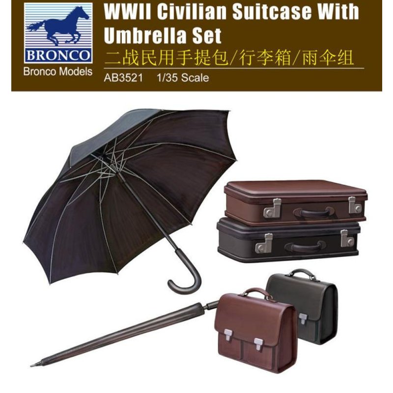 WWII Civilian Suitcase with Umbrella Set