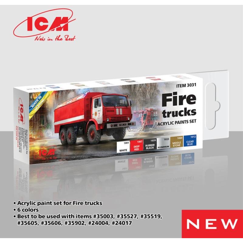 Acrylic Paint Set - Fire trucks [6 x 12 ml]