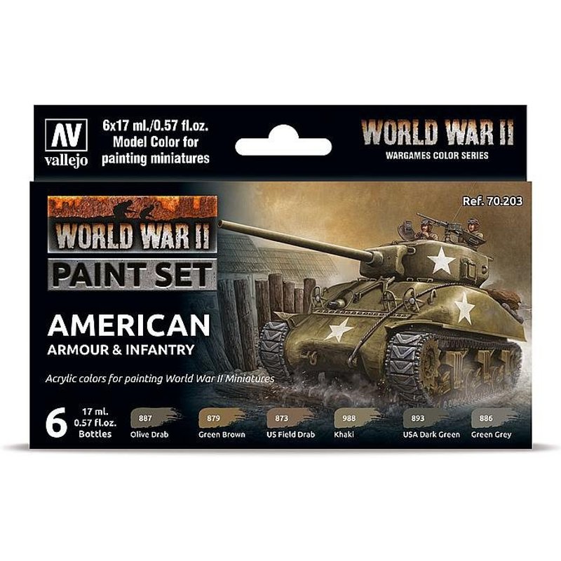 Farb-Set, US-amerikanische Panzerung und Infanterie, WWII (6x17ml)