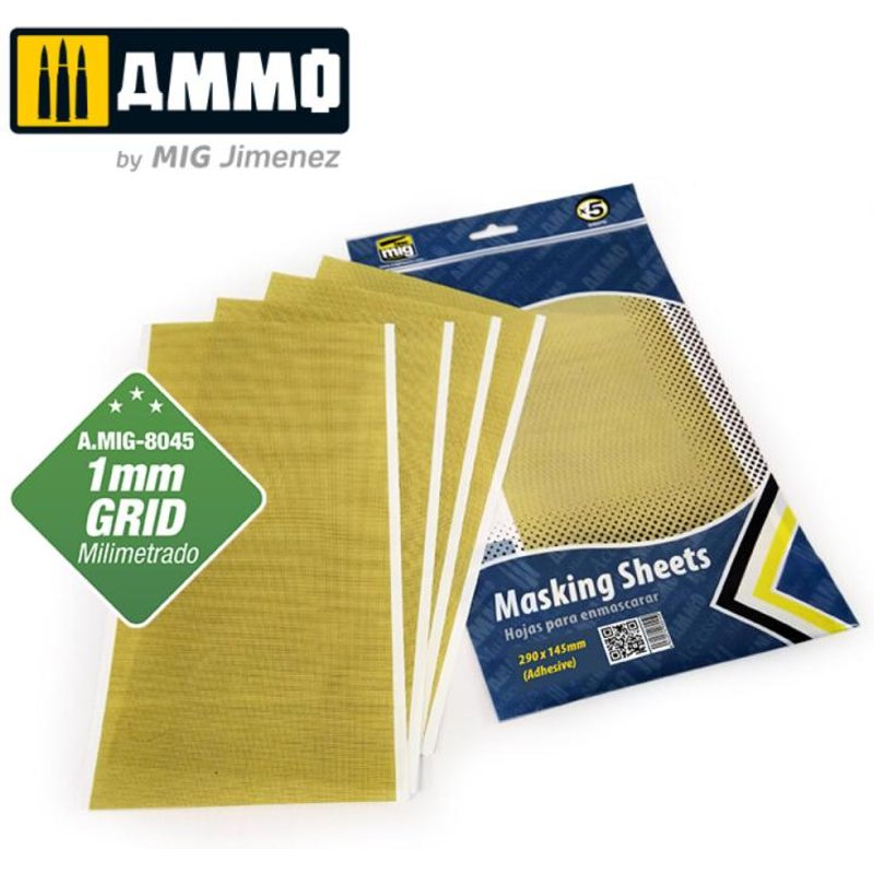 Masking Sheets 1mm Grid (x5 sheets, 290mm x 145mm, adhesive)