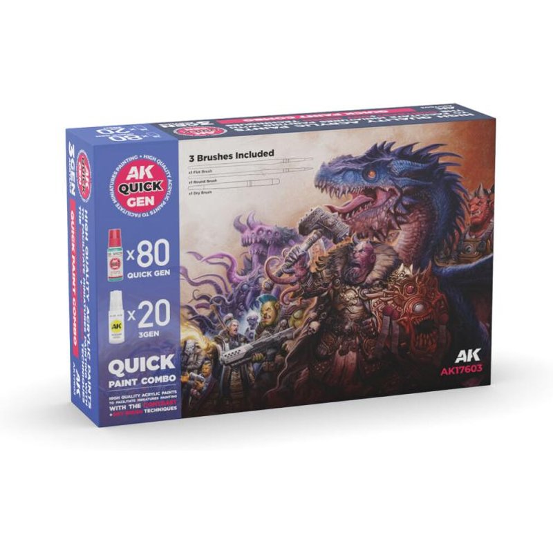 QUICK PAINT COMBO - 100 COLORS (80 QUICK GEN + 20 3GEN + 3 FREE BRUSHES + 1 MEDIUM 18ML)