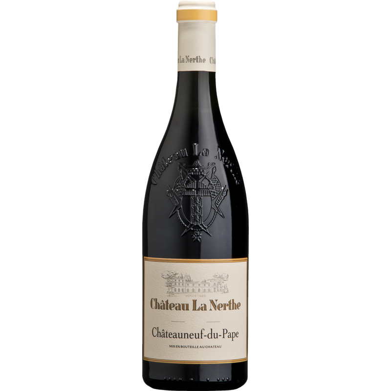 Jetzt genießen oder bis zu 15 Jahre lagern. Kein Dekantieren notwendig nötig. Die Geschichte von Chateau La Nerthe, einem der ältesten Anwesen in Châteauneuf-du-Pape, reicht mindestens bis ins Jahr 1560 zurück, in dem es einst von der Familie Tulle de Villefranche gegründet wurde. Heute verfügt das Gut über 92 Hektar Weinberge, aufgeteilt auf 57 verschiedene Parzellen, mit den für die Region so typischen sandigen Lehmböden und großen Galets-Steinen. Obwohl etwa 62 % der Anpflanzungen auf Grenache entfallen, werden hier alle 13 für Châteauneuf-du-Pape-Weine zugelassenen Rebsorten angebaut, wobei das Durchschnittsalter der Rebstöcke bei über 40 Jahren liegt. Für die Herstellung des klassischen Châteauneuf-du-Pape Rotweins werden die Trauben sorgfältig von Hand gelesen und verlesen, um eine hohe Qualität zu garantieren. In der Kellerei werden die Trauben zunächst in Bottichen vergoren und reifen dann für 12 Monate in großen Eichenfässern, ehe die endgültige Assemblage erfolgt. Vor der Abfüllung ruht der Wein dann weitere 6 Monate. Das Erste, was Sie bemerken werden, wenn Sie ein Glas dieses Châteauneuf-du-Pape einschenken, ist seine auffallend tiefrote Farbe und seine verlockenden Aromen von Schwarzen Johannisbeeren, getrockneten Veilchen und reifen Feigen. Am Gaumen entfaltet sich eine Kaskade dunkler Beeren, gefolgt von würzigen Aromen von Zedernholz, Gewürzen und getrockneten Kräutern aus dem Eichenausbau. Seine ausgezeichnete Harmonie und Ausgewogenheit in Verbindung mit den kräftigen Tanninen machen ihn zu einem idealen Begleiter für herzhafte Fleischgerichte wie Eintöpfe, Schmorbraten oder Wild.