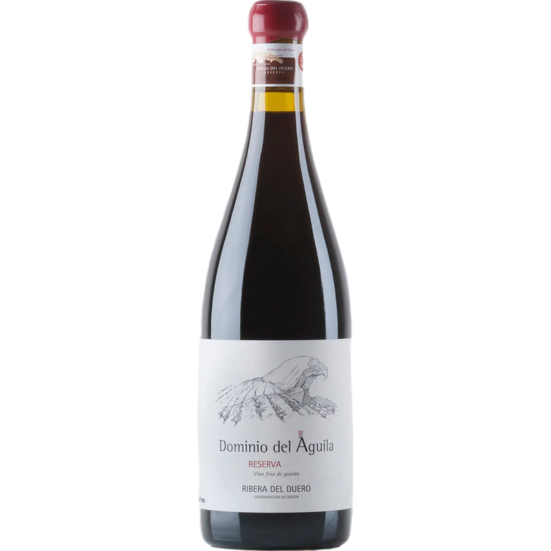 10-12 Jahre im Keller lagern. Er kann vom Dekantieren profitieren. Dominio del Aguila wurde von Jorge Monzon und seiner Frau Isabel Rodero gegründet, die beschlossen, ihren Enthusiasmus zu vereinen, um qualitativ hochwertige Weine zu erzeugen. Das Weingut verfügt über 30 Hektar sehr alte, biologisch bewirtschaftete Weinberge. Jorge, der aus einer Winzerfamilie stammt, studierte Weinbau und Önologie in Bordeaux und Burgund und arbeitete bei der Domaine de la Romanée-Conti, Grupo Vega Sicilia und Bodegas Arzuaga. Tempranillo ist der Hauptdarsteller in ihren Weinbergen, aber es gibt auch andere einheimische Sorten wie Bobal, Garnacha und Albillo. Der Reserva wird aus einer Mischung von Tempranillo, Blanca del Pais, Garnacha und Bobal aus alten, hoch gelegenen Weinbergen in der Gemeinde La Aguilera in 800 bis 900 Metern Höhe gewonnen. Die Trauben werden nach einer strengen Auswahl der besten Trauben geerntet und anschließend mit einheimischen Hefen in Zementtanks vergoren. Der Wein reift 35 Monate lang in französischen Eichenfässern und wird anschließend ohne Klärung oder Filterung in Flaschen abgefüllt. Dieser elegante Rotwein ist ausdrucksstark, komplex und frisch. In der Nase überrascht er mit angenehmen Aromen von reifen roten und schwarzen Früchten und Noten von spontanen Kräutern. Im Mund zeigt er Intensität und Struktur und ist dabei von seidiger Konsistenz. Die fruchtigen Noten verbinden sich mit saftigen Tanninen und einem langen und anhaltenden Abgang. Er kann sofort genossen werden, kann aber auch noch etwas länger im Keller lagern. Genießen Sie ihn zu rotem Fleisch oder langsam gebratener Lammkeule.