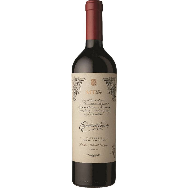 Lagerung bis zu 25 Jahre. Es wird empfohlen, ihn eine Stunde lang zu dekantieren. Das Weingut Escorihuela Gascón wurde 1888 in Godoy Cruz vom spanischen Einwanderer Don Miguel Escorihuela Gascón gegründet und ist heute eines der weltweit renommiertesten Weingüter Argentiniens. Das Weingut besitzt etwa 80 Hektar biodynamisch bewirtschaftete Weinberge in der Finca Cordon El Cepillo und weitere 150 Hektar Weinberge in Agrelo, Luján de Cuyo, wo sich auch eine Kellerei befindet, die Premium- und Ultra-Premium-Weine produziert. MEG ist eine elegante Mischung aus Malbec und Cabernet Sauvignon aus dem Weinberg El Cepillo im Uco-Tal bzw. dem Weinberg San José in Tupungato. Nach der Ernte erfolgt die Weinbereitung zu 80 % in neuen Eichenfässern, und der fertige Wein reift eineinhalb Jahre lang in französischen Eichenfässern, bevor er in Flaschen abgefüllt und in der Flasche weiter verfeinert wird. Das Ergebnis ist ein Wein mit einer intensiven, tiefen Farbe, mit dunkelroten Reflexen und violetten Nuancen. Sein aromatisches Profil ist komplex und breit, mit Noten von Pflaume und Cassis, gefolgt von würzigen Anklängen von Vanille und Nelken, provenzalischen Kräutern und einigen rauchigen Noten. Am Gaumen ist er ausdrucksstark, konzentriert und intensiv fruchtig. Er hat einen vollen Körper und eine erfrischende, ausgewogene Säure. Er ist weich und rund, mit samtigen Tanninen und einem langen, eleganten Abgang. Er passt gut zu gegrilltem Fleisch, Rinderentrecôte oder geschmortem Wild.