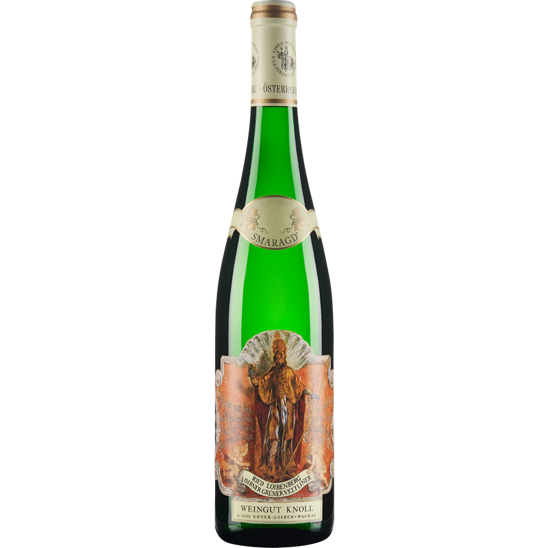 Lagerung bis zu 15 Jahre. Kein Dekantieren notwendig. Das in Unterloiben im Nordosten Österreichs gelegene Weingut Knoll ist eines der renommiertesten in der Weinregion Wachau. Die Rebanlagen des Weinguts befinden sich etwa 260 bis 350 Meter über dem Meeresspiegel, sind nach Süden ausgerichtet und durchschnittlich etwa 30 Jahre alt. Die Böden sind eine Mischung aus kalkhaltigem Schluff (Löss) und quarzhaltigem Gestein (Gneis). Das Weingut produziert tiefgründige Weißweine, die Eleganz, Finesse und Alterungspotenzial auf wunderbare Weise vereinen und ein hervorragender Ausdruck des Terroirs sind. Der Wein, der aus den Trauben des Grünen Veltliners aus der Lage Ried Loibenberg gekeltert wird, trägt den Namen "Smaragd", ein Hinweis, der für einen körperreichen und komplexen Wein steht. Die Lese erfolgt von Hand, anschließend erfolgt die Fermentierung für fünf bis fünfzehn Tage in Edelstahlbehältern und Fässern. Der fertige Wein wird dann drei Monate lang auf der Hefe gelagert. Der Wein zeigt ein komplexes und intensives aromatisches Profil mit Aromen von frischen Kräutern, weißen Früchten und mineralischen Noten. Am Gaumen ist er reichhaltig, intensiv und rund. Es ist ein sehr edler Wein mit raffinierten Aromen und einem großen Alterungspotenzial. Der Abgang ist frisch und weist salzige Noten auf. Er passt ausgezeichnet zu Spargel, allen Arten von Fisch, aber auch zu Kalbfleisch.