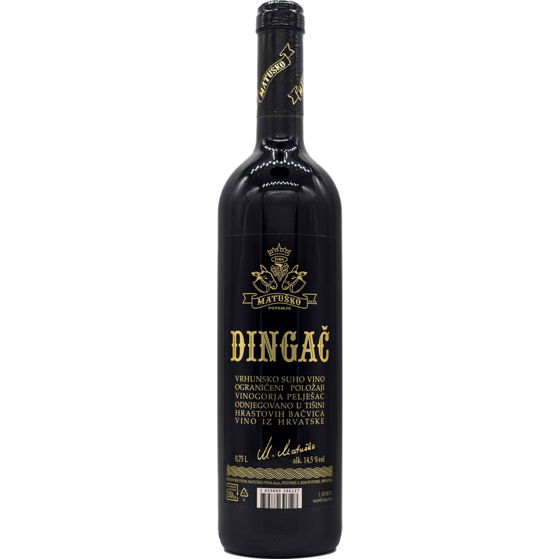 Für viele Weinfreunde ist Matusko ein der beliebtesten Reiseziele in Kroatien. Dieses Familienweingut gehört zu einer Reihe der Weinhäuser auf der Halbinsel Pelješac, wo komplexe, süße, klassische Weine aus den roten Trauben gekeltert werden. Dingač ist ein exklusives Angebot von Matuško. Der aus den roten Trauben der berühmten kroatischen Rebsorte Plavac Mali hergestellter Wein besitzt einen reifen, ausgewogenen Geschmack sowie eine schöne Aromenstruktur mit dominierenden blumigen Noten. Im Glas präsentiert sich der Wein dunkel rubinrot mit einem Hauch von Purpur am Rand. Sanfte florale Noten, die für einen Dingač sonst untypisch sind, zeigen sich in der vollen, unverwechselbar aromatischen Nase. Dieser reichliche Wein besticht durch einen angenehmen, leicht bitteren Unterton sowie unglaubliche Vielschichtigkeit. Im Geschmack ist er rund und vollmundig. Seine harmonische, gut ausbalancierte Struktur wird von einem Abgang mit süßen Tönen abgerundet, wobei auch die klaren säuerlichen Anklänge erkennbar sind. Der Wein reift in großen Eichenfässern. Vorm Servieren lassen Sie diesen Tropfen ein paar Stunden atmen, damit er durch den einströmenden Sauerstoff seine komplexen floralen Aromen entwickeln kann. Dingač ist eine geschützte EU-Ursprungsbezeichnung (gU).