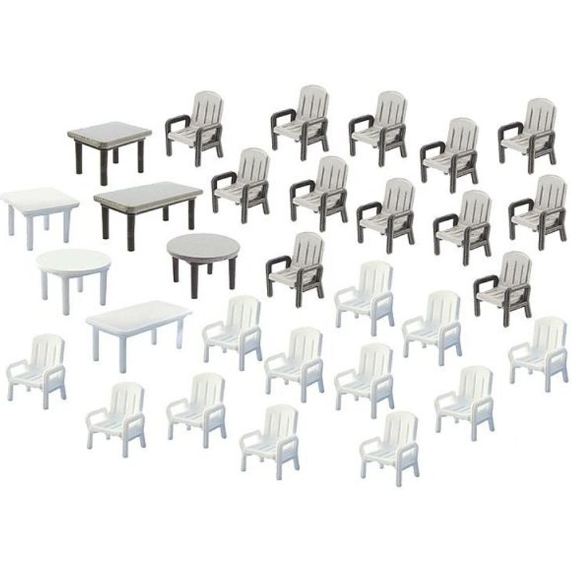 24 Gartenstühle und 6 Tische