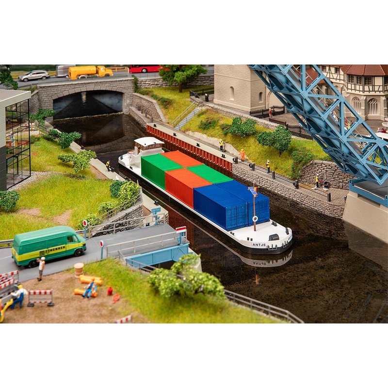 Flussfrachter mit Containern