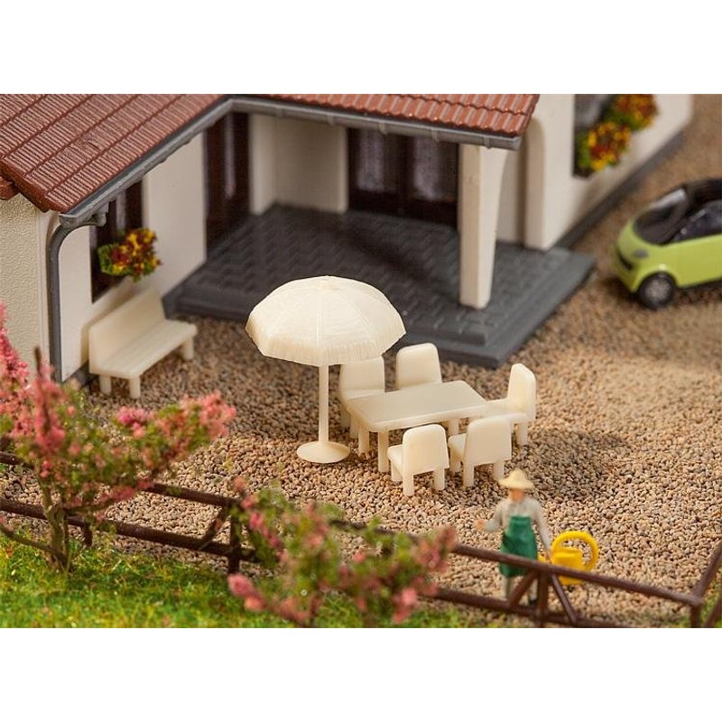 Tische, Stühle, Sonnenschirme